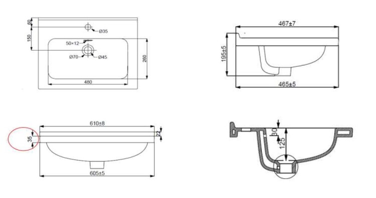 Раковина, Smartflow, ширина, мм-610, глубина, мм-467, высота, мм-195, тип установки-встраиваемый, отверстия для смесителя-1, с переливом, материал-керамика, цвет-белый Раковина, Smartflow, шгв 610*467*195, отверстия для смесителя-1, цвет-белый