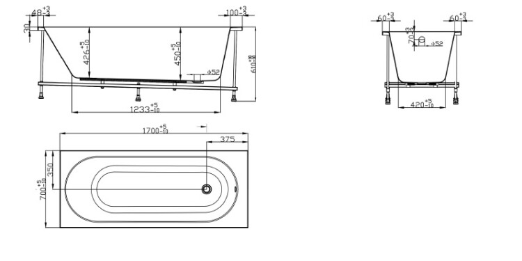 Ванна, Smartflow, Oberon Solo, ширина, мм-1700, глубина, мм-700, высота, мм-450, тип установки-встраиваемый, форма-прямоугольная, без панели, слив-перелив-необходимо заказать, диаметр слива, мм-52, каркас из нержавеющей стали, ножки-есть, материал-акриловая композитная плита, 6 слоев стекловолокна с внутренней стороны, противоскользящее покрытие, цвет-белый Ванна, Smartflow, Oberon Solo, шгв 1700*700*450, цвет-белый