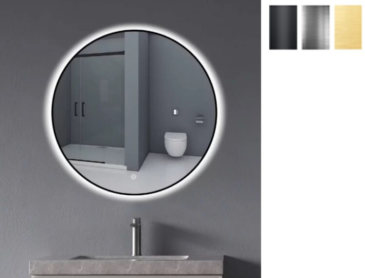 Зеркало, Smartflow, круглое, ширина, мм-800, глубина, мм-7, высота, мм-800, тип установки-настенный, с подсветкой, тип освещения-светодиодная подсветка (LED), 3 режима-3000-3500 К (теплый свет), 4000-4500 К (нейтральный свет), 6000-6500 К (белый свет). функция уменьшения яркости, IP44, защита от запотевания, тип включения-сенсорный, рама-есть, материал рамы-алюминий 7 мм, цвет рамы-черный матовый Зеркало, Smartflow, круглое, шгв 800*7*800, с подсветкой, цвет рамы-черный матовый