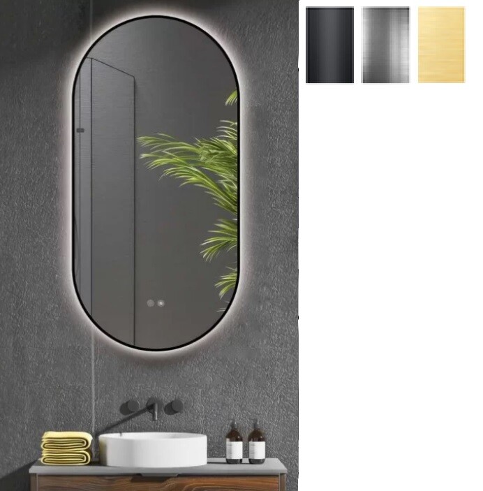 Зеркало, Smartflow, овальное, ширина, мм-500, глубина, мм-25, высота, мм-1000, тип установки-настенный, с подсветкой, тип освещения-светодиодная подсветка (LED), 3 режима-3000-3500 К (теплый свет), 4000-4500 К (нейтральный свет), 6000-6500 К (белый свет). функция уменьшения яркости, IP44, защита от запотевания, тип включения-сенсорный, рама-есть, материал рамы-алюминий 25 мм, цвет рамы-черный матовый Зеркало, Smartflow, овальное, шгв 500*25*1000, с подсветкой, цвет рамы-черный матовый