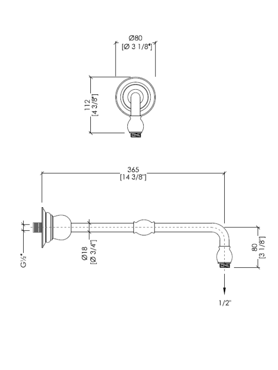 Держатель верхнего душа, Devon&Devon, Shower Arms, вид-настенный, вынос, мм-365, цвет-светлое золото Держатель верхнего душа, Devon&Devon, Shower Arms, цвет-светлое золото