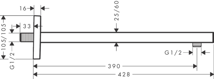 Держатель верхнего душа, Hansgrohe, Square, вид-настенный, вынос, мм-390, соединительная резьба G ½, цвет-хром Держатель верхнего душа, Hansgrohe, Square, цвет-хром