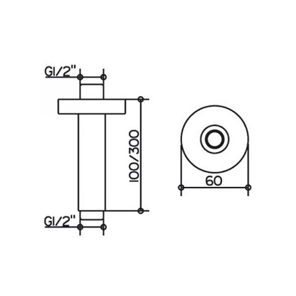 Держатель верхнего душа, Keuco, вид-потолочный, вынос, мм-100, цвет-хром Держатель верхнего душа, Keuco, цвет-хром