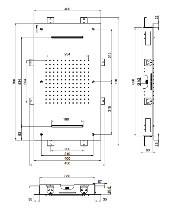 Верхний душ, Fima Carlo Frattini, Showerhead, тип установки-потолочный, размер душевого диска, мм-700*400, форма-прямоугольная, анти-кальк диффузоры, количество режимов-2, тип струи-ливневая, материал-нержавеющая сталь, цвет-хром Верхний душ, Fima Carlo Frattini, Showerhead, 700*400, цвет-хром