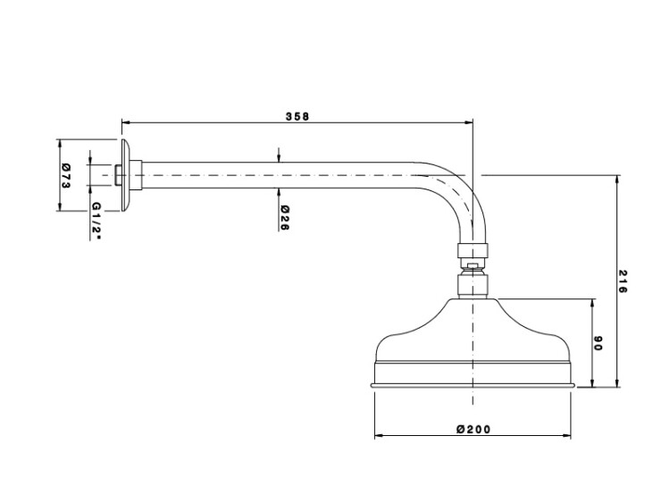Верхний душ, Nicolazzi, Doccia, тип установки-настенный, ширина, мм-200, глубина, мм-200, высота, мм-90, форма-круглая, держатель-есть, размер держателя-358, цвет-English Gold Верхний душ, Nicolazzi, Doccia, шгв 200*200*90, цвет-English Gold
