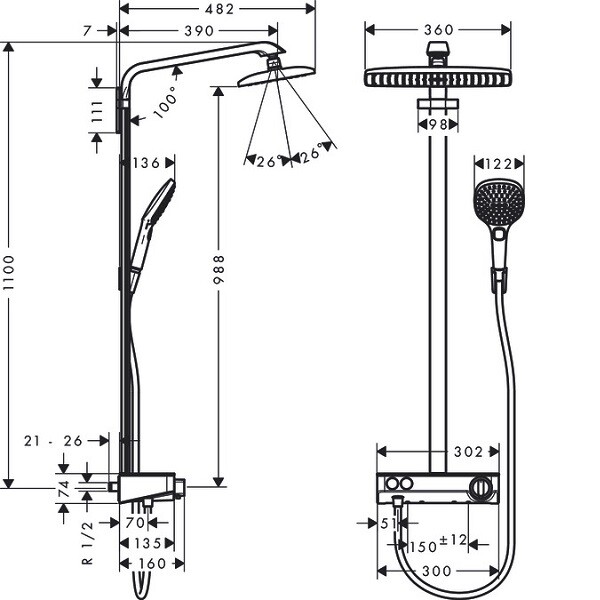 HANSGROHE Raindance Select E Душевая стойка Raindance E цвет-хром