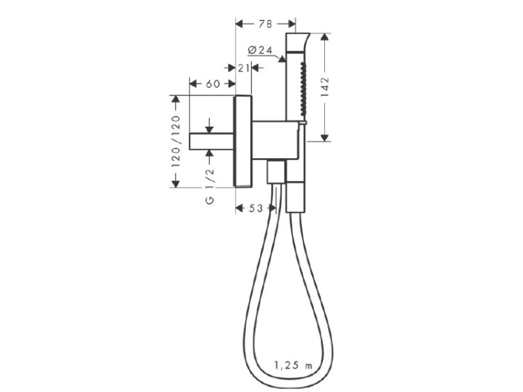 Душевой набор, Hansgrohe, Axor Starck Organic, размер душевого диска, мм-24*142, форма лейки-цилиндрическая, количество режимов-2, держатель для душа-есть, шланг-есть, длина шланга, мм-1250, шланговое подключение-есть, цвет-шлифованное золото, ручной душ-"палочка", с металлической розеткой Душевой набор, Hansgrohe, Axor Starck Organic, цвет-шлифованное золото