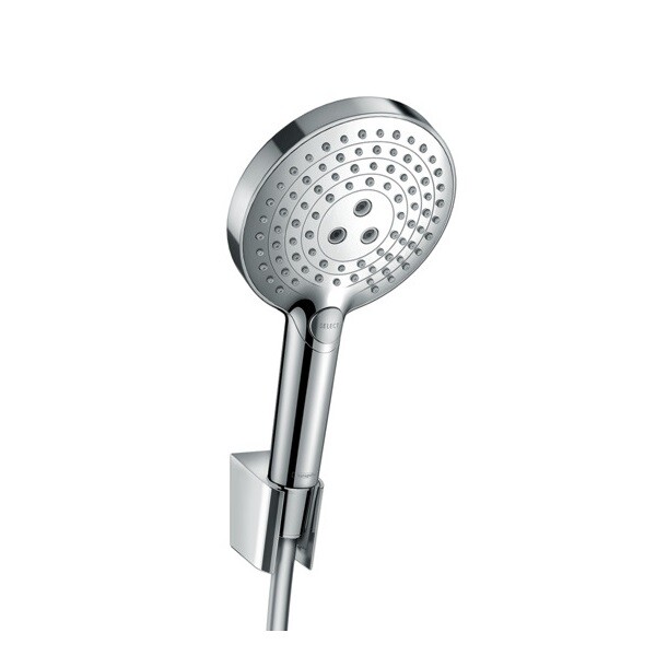 Душевой набор, Hansgrohe, Raindance Select S, размер душевого диска, мм-125, форма лейки-круглая, количество режимов-3, тип струи-RainAir, Rain, WhirlAir, держатель для душа-есть, шланг-есть, длина шланга, мм-1250, цвет-хром Душевой набор, Hansgrohe, Raindance Select S, цвет-хром