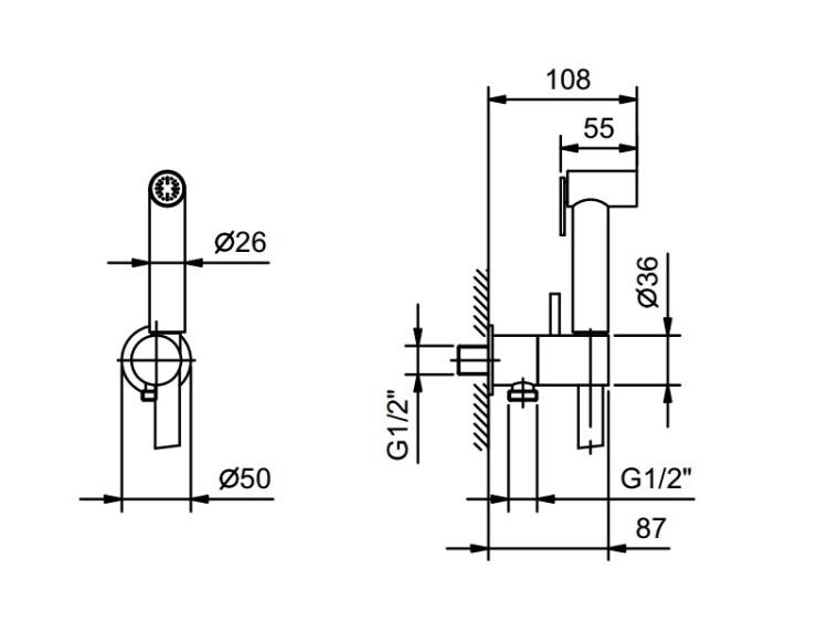 Гигиенический душ, Fantini, шланг-есть, длина шланга, мм-1200, держатель-есть, материал-латунь, цвет-Matt British Gold PVD, с двойной функцией (для очистки унитаза, для личной гигиены, при использовании вместе со смесителем для душа), шланговое подсоединение, запорный вентиль, круглая розетка, впуск 1/2'' Гигиенический душ, Fantini, цвет-Matt British Gold PVD