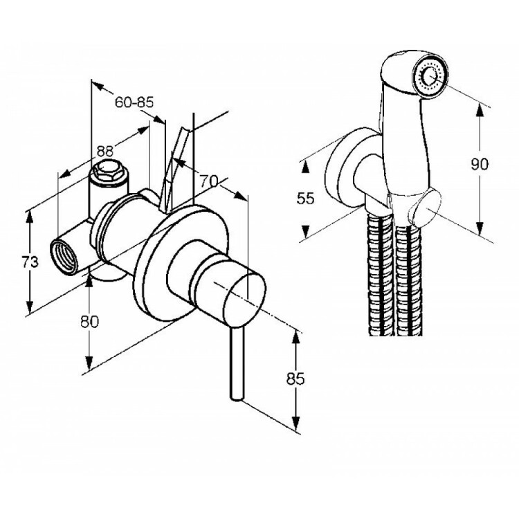 Гигиенический душ, Kludi, BOZZ, "классик" с кнопкой включения воды, встраиваемый смеситель с внутренней частью-в комплекте, шланг-есть, длина шланга, мм-1250, держатель со шланговым подсоединением DN15-в комплекте, материал-латунь, цвет-хром Гигиенический душ со смесителем, Kludi, BOZZ, "классик", цвет-хром