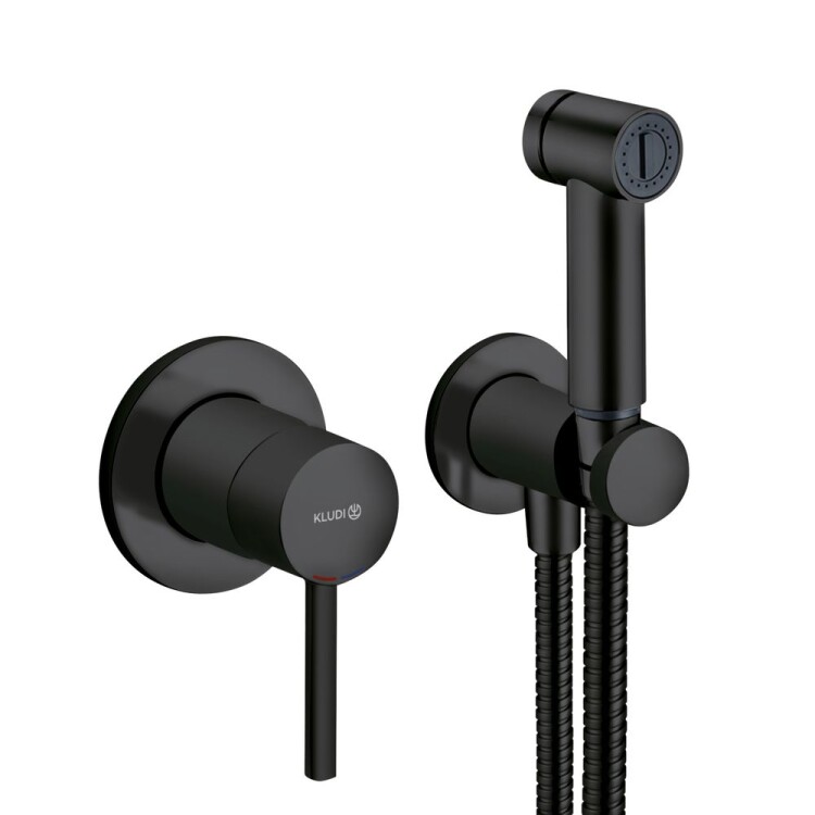 Гигиенический душ, Kludi, BOZZ, "модерн" с кнопкой включения воды, встраиваемый смеситель с внутренней частью-в комплекте, шланг-есть, длина шланга, мм-1250, держатель со шланговым подсоединением DN15-в комплекте, материал-латунь, цвет-чёрный матовый Гигиенический душ со смесителем, Kludi, BOZZ, "модерн", цвет-чёрный матовый