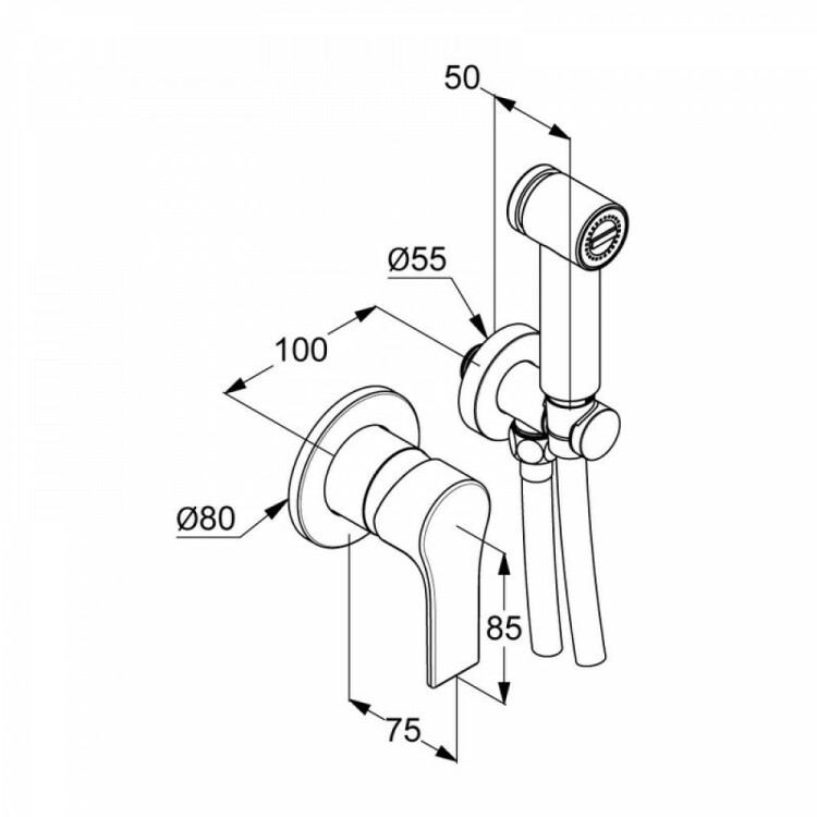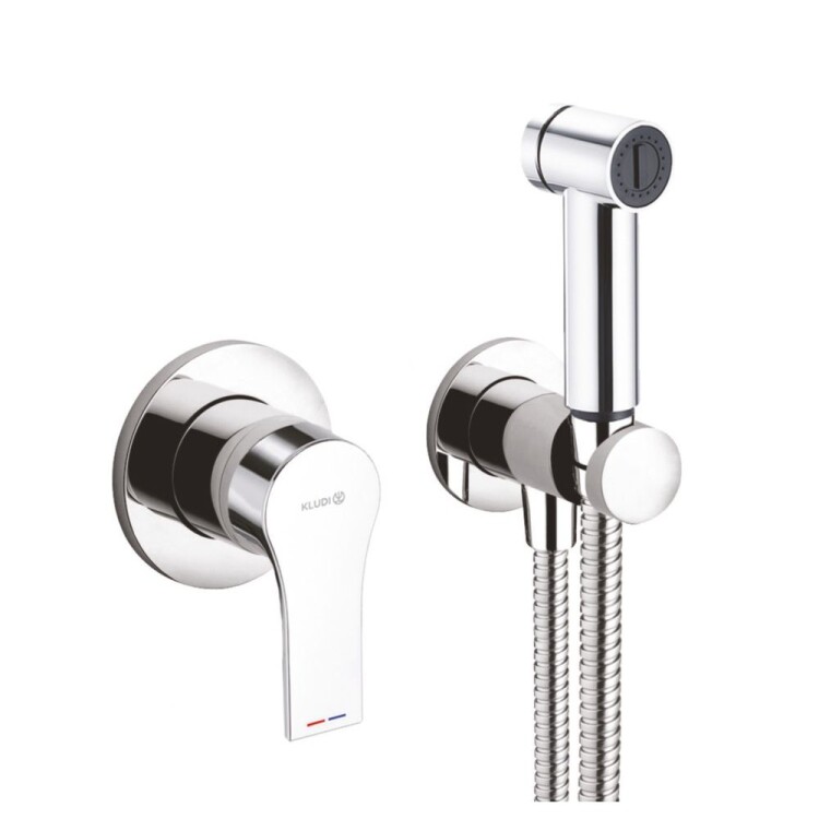 Гигиенический душ, Kludi, ZENTA SL, "модерн" с кнопкой включения воды, встраиваемый смеситель с внутренней частью-в комплекте, шланг-есть, длина шланга, мм-1250, держатель со шланговым подсоединением DN15-в комплекте, материал-латунь, цвет-хром Гигиенический душ со смесителем, Kludi, ZENTA SL, "модерн", цвет-хром