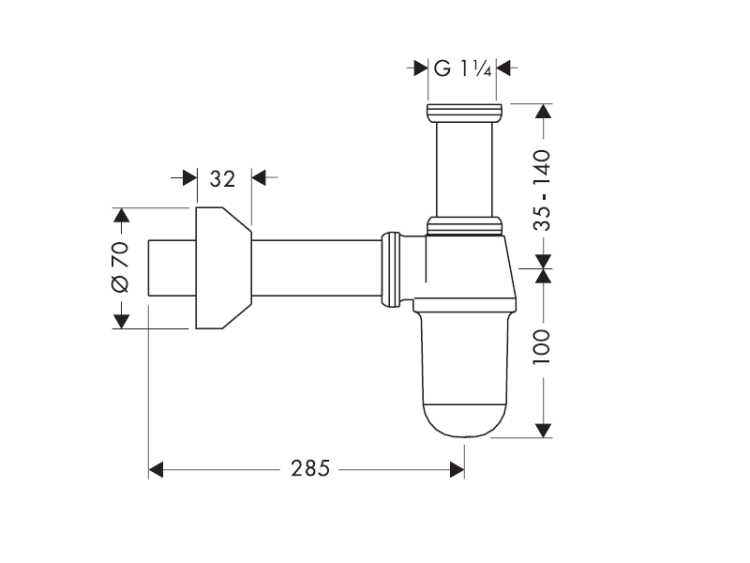 Сифон, Hansgrohe, назначение-для раковины, ширина, мм-70, глубина, мм-285, высота, мм-240, тип-бутылочный, размер ввод/отвод-1 1/4", цвет-хром Сифон, Hansgrohe, для раковины, цвет-хром