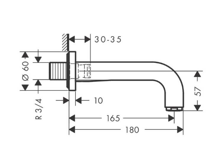 Излив, Hansgrohe, Axor Citterio, тип установки-на ванну, вынос излива, мм-165, стандарт подводки-3/4", расход воды-25 л/мин, тип струи-обычная струя, цвет-хром Излив, Hansgrohe, Axor Citterio, цвет-хром