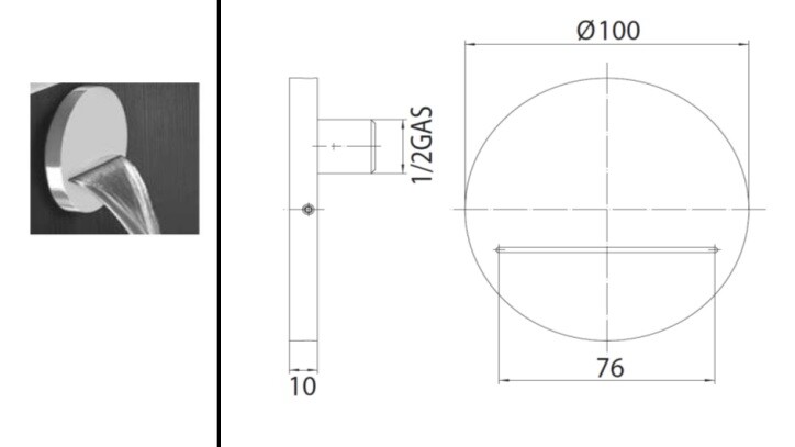 Излив, Bossini, Olé Round, для ванной или душа, встраиваемый, стандарт подводки-1/2", каскадная струя, материал-латунь, цвет-хром Излив, Bossini, Olé Round, цвет-хром
