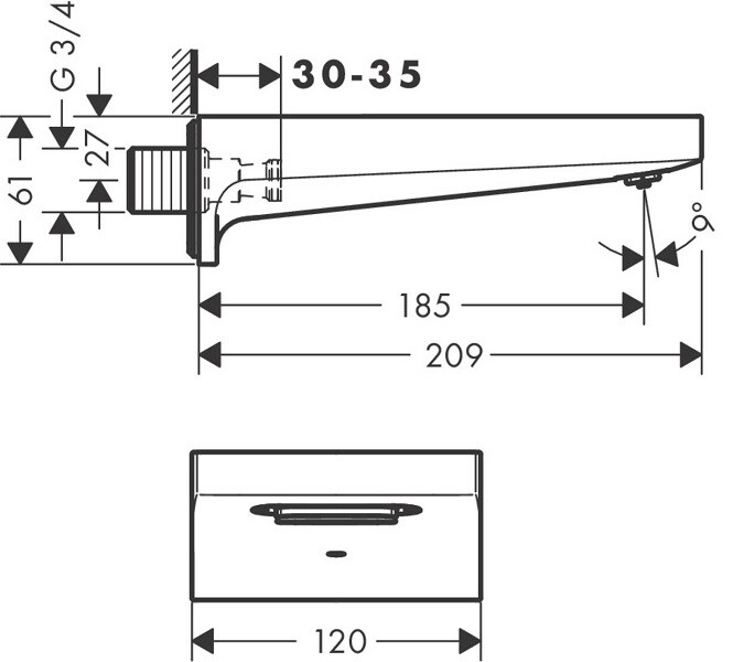 Излив, Hansgrohe, Metropol, для ванны, тип установки-настенный, вынос излива, мм-185, цвет-полированное золото Излив, Hansgrohe, Metropol, цвет-полированное золото