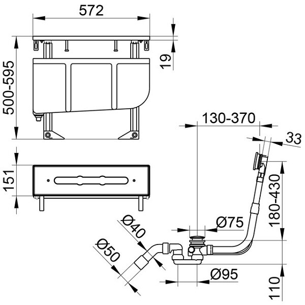 Монтажный блок, Keuco, Edition 11, для бортика ванны, встраиваемый комплект для смесителей на 4 отверстия, можно под плитку с гибкой подводкой G 1/2 x G 1/2 (400 мм), для монтажа с угловыми вентилями, с емкостью для сточной воды, вкл. защитную систему от перелива с соединительным шлангом, в комплекте со сливом‑переливом, G 1 1/2 дюйма, цвет-хром Монтажный блок, Keuco, Edition 11, цвет-хром