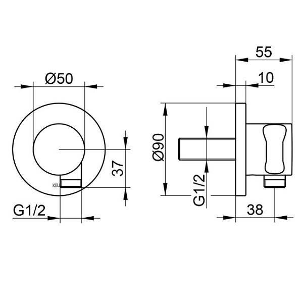 Вывод воды для шланга, Keuco, IXMO, комплектация-держатель душевой лейки, круглая розетка, обратный клапан, цвет-хром Вывод воды для шланга, Keuco, IXMO, цвет-хром