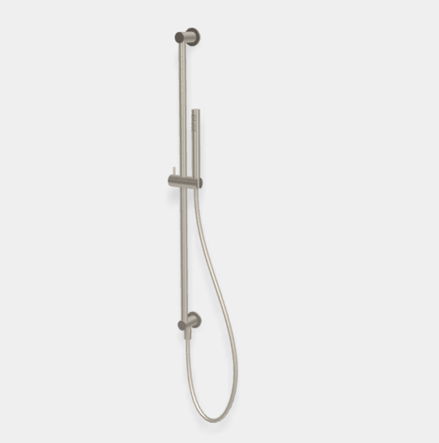 Душевой гарнитур, Fima Carlo Frattini, Shower set, размер штанги, мм-876, размер шланга, мм-1500, материал-хромалюкс, ручной душ-есть, форма лейки-цилиндрическая, шланговое подключение-есть, подвод воды-1/2", материал-латунь, цвет-брашированный никель Душевой гарнитур, Fima Carlo Frattini, Shower set, цвет-брашированный никель