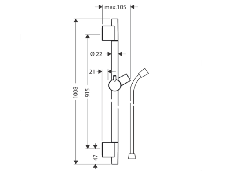 Штанга для душа, Hansgrohe, Unica, длина штанги, мм-900, держатель ручного душа-есть, шланг-есть, цвет-шлифованная бронза, в комплекте с крепежом для настенного монтажа Штанга для душа, Hansgrohe, Unica, 900, цвет-шлифованная бронза