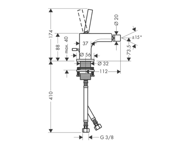 Смеситель для биде, Hansgrohe, Axor Citterio, тип открывания воды-однорычажный, тип регулирования воды-керамический узел смешивания, отверстия для монтажа-1, высота, мм-174, вынос излива, мм-112, вид ручки-джойстикового типа, донный клапан-есть, тип подводки-гибкая, стандарт подвода воды-3/8", цвет-полированный черный хром, с неподвижным изливом Смеситель для биде, Hansgrohe, Axor Citterio, цвет-полированный черный хром