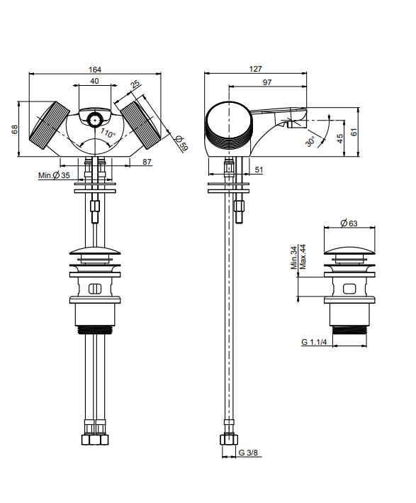 Смеситель для биде, Fima Carlo Frattini, Texture Collection, H COLLECTION, тип открывания воды-вентильный, тип регулирования воды-керамическая кран-букса, отверстия для монтажа-1, высота, мм-68, вынос излива, мм-97, материал ручки-металл, цвет ручки-в цвет смесителя, донный клапан-есть click-clack 1``1/4, с двумя гибкими шлангами, тип подводки-гибкая, стандарт подвода воды-3/8", накладка-необходимо заказать, цвет-золото Смеситель для биде, Fima Carlo Frattini, Texture Collection, H COLLECTION, цвет-золото