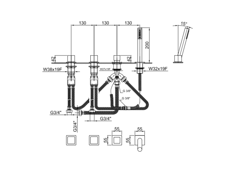 Смеситель для душа, Fantini, Mint, тип открывания воды-нажимной, тип регулирования воды-керамический картридж, тип установки-на борт ванны, отверстия для монтажа-4, комплектация-гибкий шланг, ручной душ, цвет-матовая натуральная сталь Смеситель для душа, Fantini, Mint, цвет-матовая натуральная сталь
