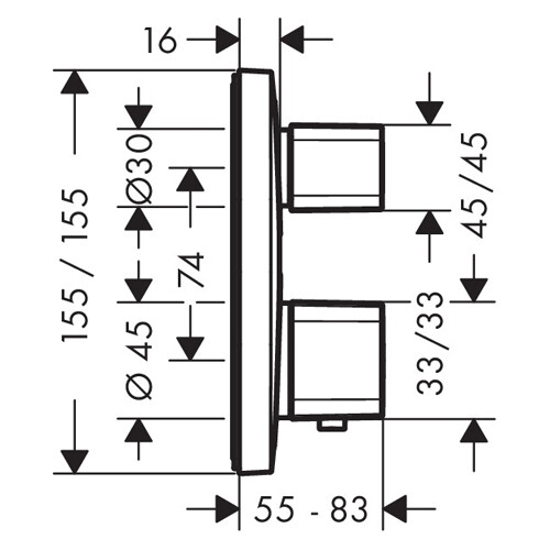 Смеситель для душа, Hansgrohe, Ecostat E, тип открывания воды-вентильный, тип регулирования воды-термостатический картридж, монтаж-вертикальный встраиваемый (настенный), внутренняя часть-необходимо заказать, цвет-хром Смеситель для душа, Hansgrohe, Ecostat E, цвет-хром