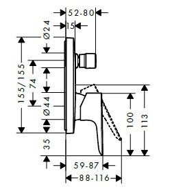 Смеситель для душа, Hansgrohe, Talis E, тип открывания воды-однорычажный, тип регулирования воды-керамический узел смешивания, комплектация-ручка, гильза, розетка, функциональный блок, переключатель, внутренняя часть-необходимо заказать, цвет-хром Смеситель для душа, Hansgrohe, Talis E, цвет-хром