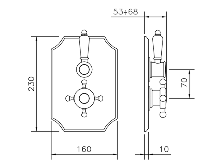 Смеситель для душа, Cisal, Victorian, тип регулирования воды-термостатический картридж, тип установки-встраиваемый, внутренняя часть-необходимо заказать, цвет-Chrome Смеситель для душа, Cisal, Victorian, цвет-Chrome