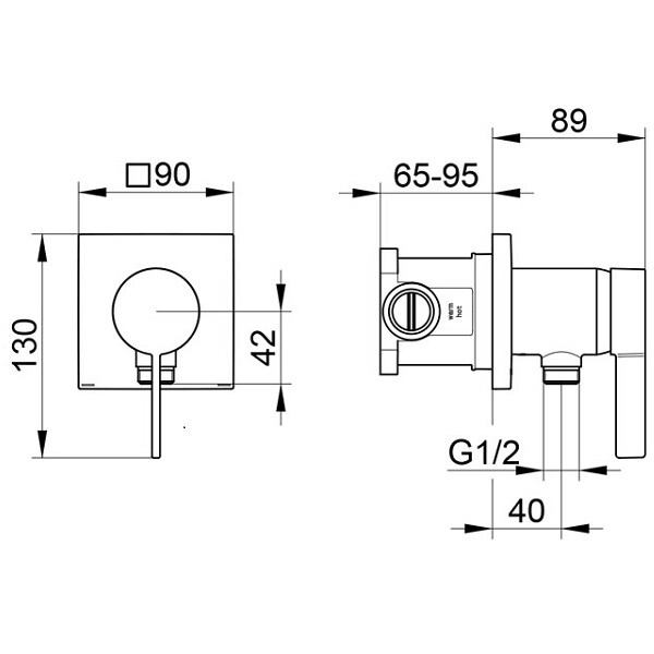 Смеситель для душа, Keuco, IXMO, тип открывания воды-однорычажный, тип установки-встраиваемый, комплектация-шланговое подсоединение, внутренняя часть-есть, цвет-хром Смеситель для душа, Keuco, IXMO, цвет-хром