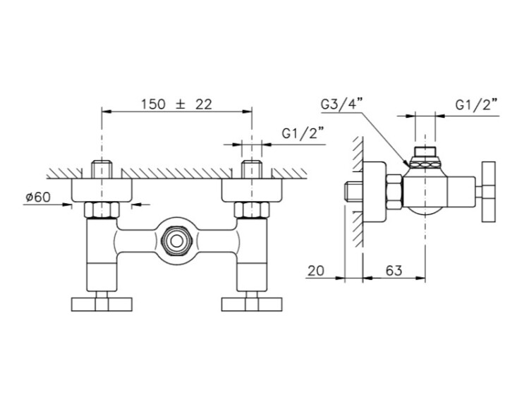Смеситель для душа, Nicolazzi, Mac Kinley 05, тип открывания воды-двухвентильный, тип регулирования воды-керамический картридж, тип установки-настенный, отверстия для монтажа-2, вид ручки-29 Mac Kinley 05, цвет-Chrome, без гибкого шланга и лейки Смеситель для душа, Nicolazzi, Mac Kinley 05, цвет-Chrome