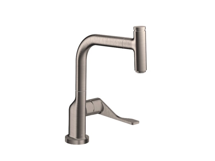 Смеситель для кухни, Hansgrohe, Axor Citterio, тип открывания воды-однорычажный, тип регулирования воды-керамический узел смешивания, отверстия для монтажа-1, высота, мм-342, вынос излива, мм-219, тип излива-поворотный, дополнительные функции-выдвижной душ, стандарт подвода воды-3/8", цвет-под сталь, магнитная система крепления душа MagFit Смеситель для кухни, Hansgrohe, Axor Citterio, цвет-под сталь