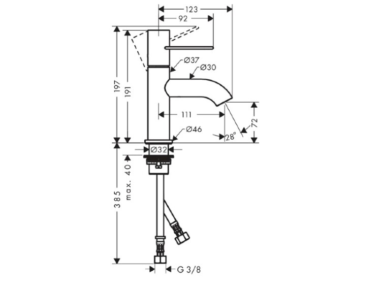 Смеситель для раковины, Hansgrohe, Axor Uno, тип открывания воды-однорычажный, отверстия для монтажа-1, высота, мм-191, вынос излива, мм-111, вид ручки-петля, цвет-шлифованное золото Смеситель для раковины, Hansgrohe, Axor Uno, цвет-шлифованное золото