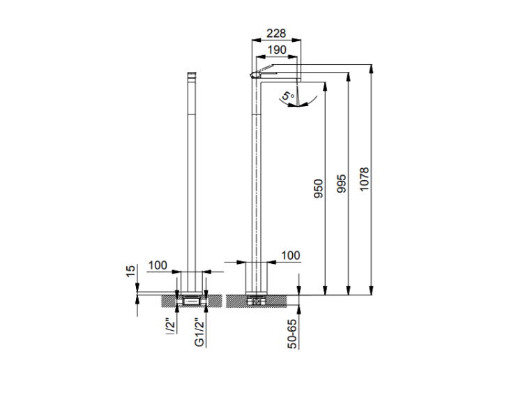 Смеситель для раковины, Fantini, Mint, тип открывания воды-однорычажный, тип установки-напольный, отверстия для монтажа-1, высота, мм-995, вынос излива, мм-190, стандарт подвода воды-1/2", внутренняя часть-необходимо заказать, цвет-хром Смеситель для раковины, Fantini, Mint, цвет-хром