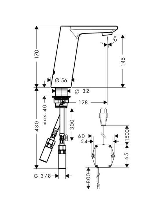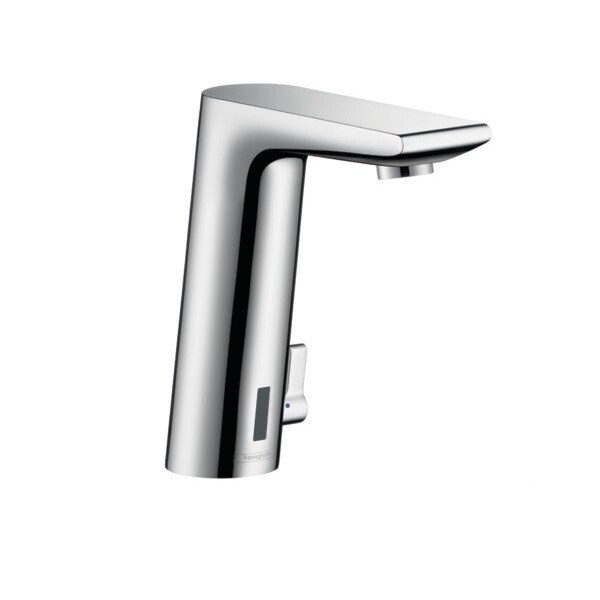 Смеситель для раковины, Hansgrohe, Metris S, тип открывания воды-электронный, тип регулирования воды-инфракрасный электронный датчик, тип питания-батарея, высота, мм-170, вынос излива, мм-128, тип излива-неподвижный, цвет-хром, температура регулируется посредством бокового смешивающего рычага, регулируемое ограничение температуры ComfortZone 150, ручное прекращение подачи воды для чистки раковины, аэратор с защитой от вандализма, регулируемый радиус действия инфракрасного датчика (две настройки), автоматическая адаптация инфракрасного датчика к окружающим условиям, расход воды 5 л /мин Смеситель для раковины, Hansgrohe, Metris S, цвет-хром