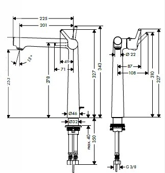 Смеситель для раковины, Hansgrohe, Talis S, тип открывания воды-однорычажный, тип регулирования воды-керамический узел смешивания, отверстия для монтажа-1, высота, мм-343, вынос излива, мм-201, донный клапан-есть, цвет-хром Смеситель для раковины, Hansgrohe, Talis S, цвет-хром