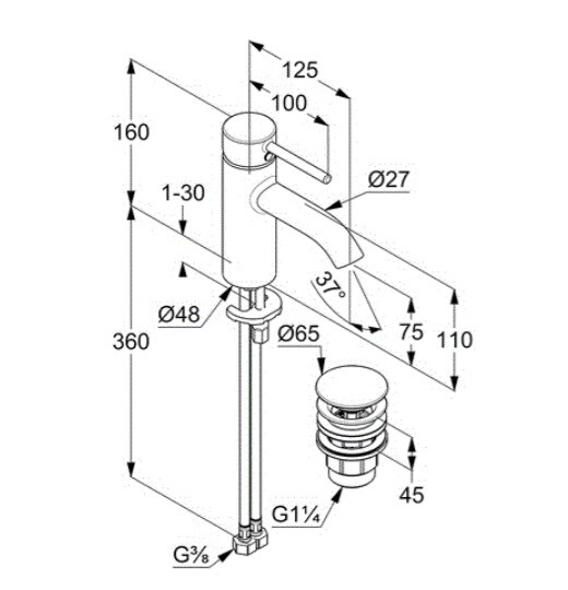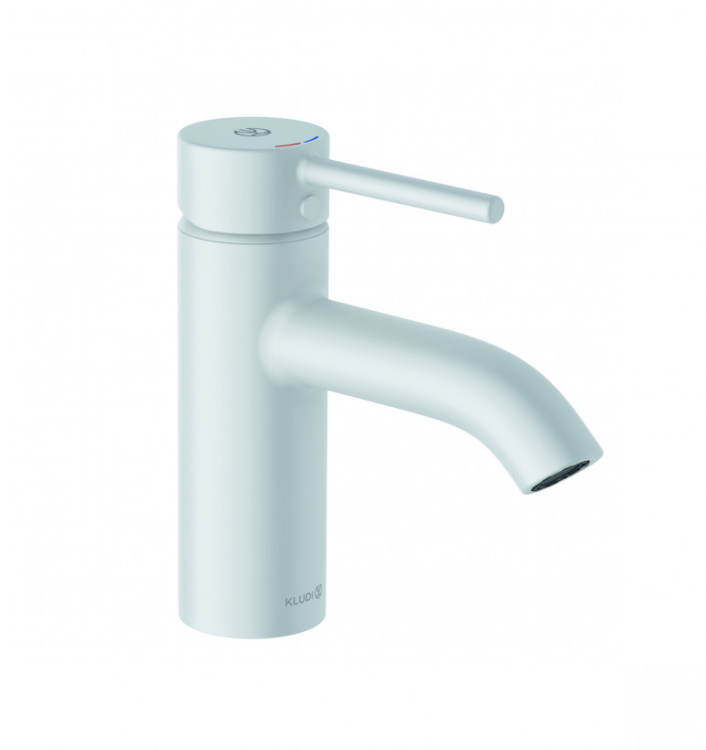 Смеситель для раковины, Kludi, BOZZ, тип открывания воды-однорычажный, тип регулирования воды-керамический картридж, монтаж-на раковину/столешницу, отверстия для монтажа-1, высота, мм-160, вынос излива, мм-125, тип излива-неподвижный, донный клапан-есть, тип подводки-гибкая, стандарт подвода воды-3/8", цвет-белый матовый Смеситель для раковины, Kludi, BOZZ, цвет-белый матовый