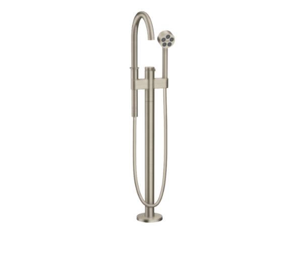 Смеситель для ванны и душа, Axor One, тип открывания воды-однорычажный, тип регулирования воды-керамический картридж, монтаж-напольный, отверстия для монтажа-1, вынос излива, мм-220, в комплекте-ручной душ, шланг для душа, держатель для душа, переключатель с автоматической переустановкой, внутренняя часть-необходимо заказать, цвет-никель шлифованный Смеситель для ванны и душа, Axor One, цвет-никель шлифованный