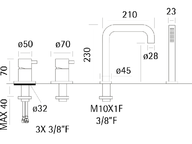 Смеситель для ванны и душа, Cisal, Xion, тип открывания воды-однорычажный, отверстия для монтажа-4, вынос излива, мм-210, цвет-Brushed Stainless Steel, комплектация-ручной душ Смеситель для ванны и душа, Cisal, Xion, цвет-Brushed Stainless Steel