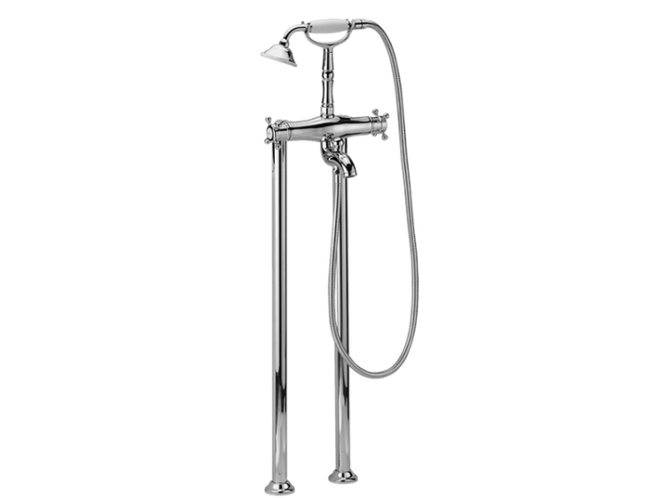 Смеситель для ванны и душа, Cisal, Victorian, тип регулирования воды-термостатический картридж, тип установки-напольный, отверстия для монтажа-2, вынос излива, мм-186, комплектация-ручной душ, держатель ручного душа, шланг, цвет-хром Смеситель для ванны и душа, Cisal, Victorian, цвет-хром