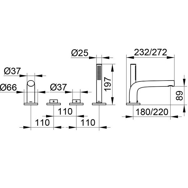 Смеситель для ванны и душа, Keuco, Edition 400, тип регулирования воды-керамический вентиль, тип установки-на борт ванны, отверстия для монтажа-4, вынос излива, мм-220, комплектация-ручной душ, цвет-хром Смеситель для ванны и душа, Keuco, Edition 400, цвет-хром