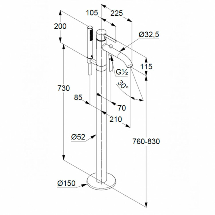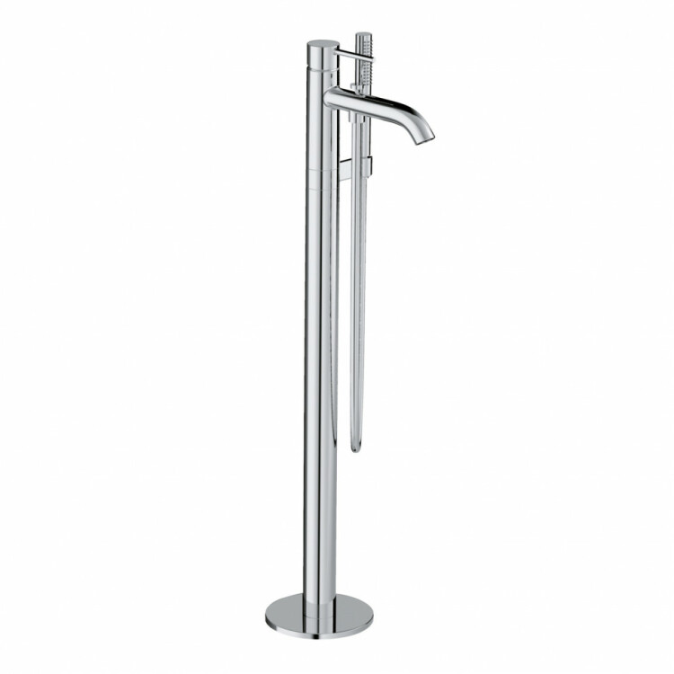 Смеситель для ванны и душа, Kludi, BOZZ, тип открывания воды-однорычажный, тип регулирования воды-керамический картридж, монтаж-напольный, отверстия для монтажа-1, вынос излива, мм-225, тип излива-неподвижный, ручной душ-в комплекте, шланг-есть, длина шланга,мм-1250, автоматический переключатель душ/ванна, внутренняя часть-необходимо заказать, цвет-хром Смеситель для ванны и душа, Kludi, BOZZ, цвет-хром