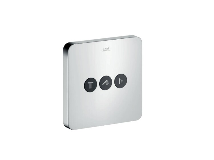 Запорно-переключающее устройство, Axor, Axor ShowerSelect, тип установки-встраиваемый, на 3 потребителя, комплект поставки-металлическая розетка, функциональный блок, кнопки, внутренняя часть-необходимо заказать, цвет-хром Запорно-переключающее устройство, Axor, Axor ShowerSelect, хром