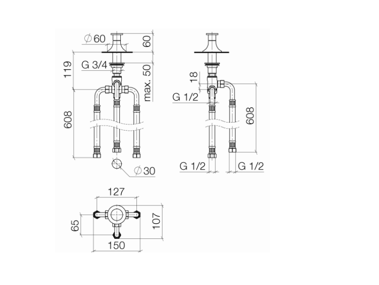 Вентиль, Dornbracht, Vaia, тип вентиля-переключающий, 1/2", тип установки-на борту ванны/край плитки, цвет-платина матовая, на 2 положения, автоматическое переключение ванна/душ, диаметр розетки,мм-60 Вентиль, Dornbracht, Vaia, 1/2", цвет-платина матовая