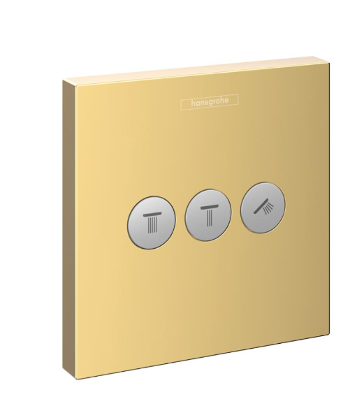 Вентиль, Hansgrohe, ShowerSelect, запорный/переключающий, тип установки-настенный встраиваемый, внутренняя часть-необходимо заказать, цвет-полированное золото Вентиль, Hansgrohe, ShowerSelect, запорный/переключающий, цвет-полированное золото