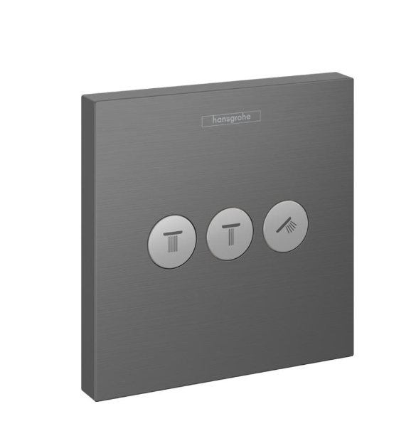 Вентиль, Hansgrohe, ShowerSelect, запорный/переключающий, тип установки-настенный встраиваемый, внутренняя часть-необходимо заказать, цвет-шлифованный чёрный хром Вентиль, Hansgrohe, ShowerSelect, запорный/переключающий, цвет-шлифованный чёрный хром