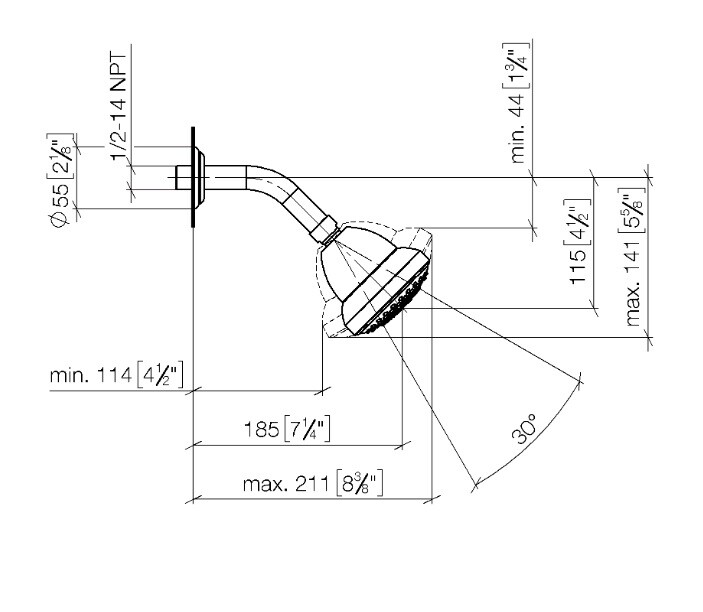 Верхний душ, Dornbracht, Madison, тип установки-настенный, размер душевого диска, мм-94, форма-круглая, количество режимов-3, тип струи-purify rain, compact soft flow, compact aquapressure flow, шаровой шарнир (угол поворота 30°), держатель-в комплекте, размер держателя, мм-200, розетка,мм-Ø 55, присоединение 1/2“, внутренняя часть-необходимо заказать, цвет-хром Верхний душ, Dornbracht, Madison, 94, цвет-хром