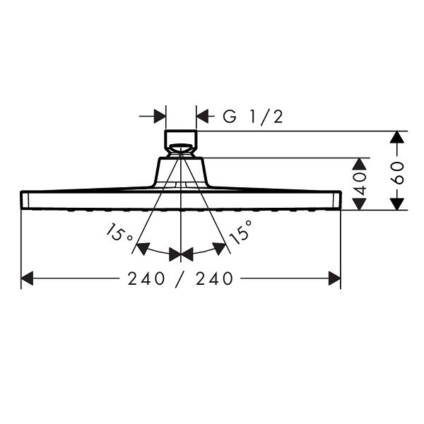 Верхний душ, Hansgrohe, Crometta E, тип установки-настенный, потолочный, ширина, мм-240, глубина, мм-240, высота, мм-60, форма-квадратная, количество режимов-1, тип струи-Rain, цвет-хром Верхний душ, Hansgrohe, Crometta E, шгв 240*240*60, цвет-хром