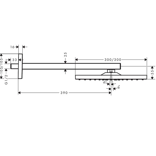 Верхний душ, Hansgrohe, Raindance E, тип установки-настенный, размер душевого диска, мм-300*300, форма-квадратная, количество режимов-1, тип струи-RainAir, держатель-есть, размер держателя-390, цвет-хром, полностью хромированный душевой диск Верхний душ, Hansgrohe, Raindance E, 300*300, цвет-хром